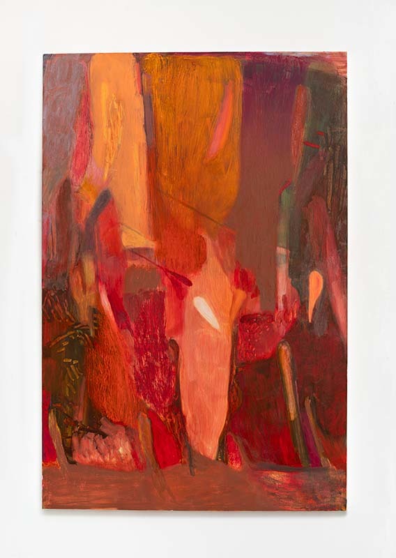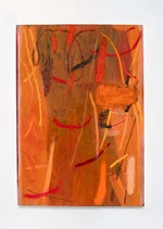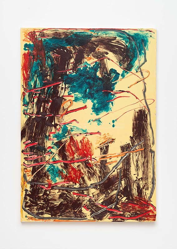 O que observamos nesse conjunto de pinturas, muito embora ainda trazem os resquícios da construção figurativa, é o foco cuidadoso nas características e variações dos materiais utilizados, como a combinação das cores, das densidades e das texturas, a partir das tintas e bastões a óleo, tinta acrílica, pigmentos e óleos, que são fabricados com elementos específicos de origem natural, como terra e minerais brasileiros.