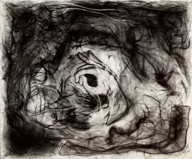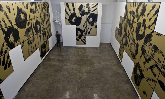 Contingent Beauty intertwines aesthetic refinement with biting critiques of timely issues grounded in the complex realities of Latin America and its long history of colonization, political repression, and economic crisis. These issues range from poverty, violence, gender, government corruption, and globalization, to the war on drugs and the legacy of colonialism. In this context, Regina Silveira presents the work Irruption (Oval) (2005), where she employs everyday materials to create non-traditional drawings, by applying to the wall vinyl impressions of bare feet belonging to hundreds of Brazilian street children.