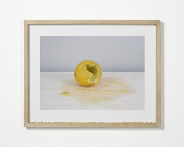 Renowned for his production that breaks the limits between artistic languages such as cinema, photography and visual arts, Pablo Lobato (Bom Despacho, 1976) presents four new works at the Biennial, all from the series Muda [Seeding]: Seeding (Kino, #1), Seeding (Papaya, #4), Seeding (Mellon, #4) and Seeding (Plum, Pêssego, #1). These works from 2015 in mixed media are produced after photographs of the fruits that entitle them, fruits that were excavated to have their seeds removed – the same seeds that are placed on the bottom of the frame, in front of the print, creating thus unique pieces. With this procedure, Pablo Lobato subverts one of the key characteristics of photography – its reproducibility. He rescues, as an object, the organic element transformed into image, and problematizes the nature of our representations and the statute of contemporary image.