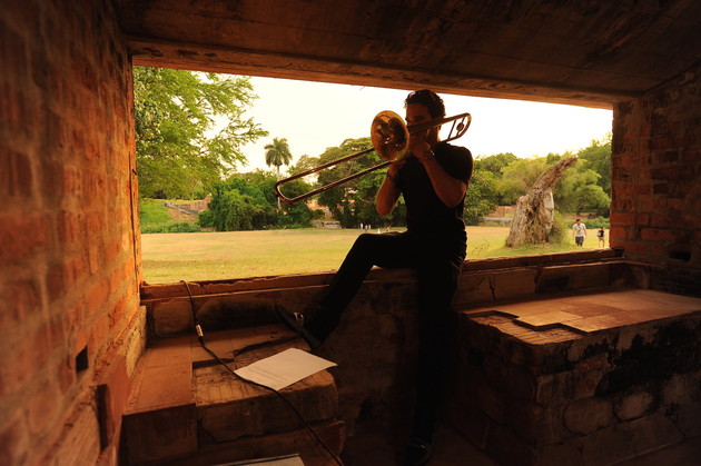Ensayo sobre lo Fluido, by its turn, was an intervention in the building of ISA - Universidad de las Artes' Music School held during the 12th Bienal de La Habana. The construction, a complex structure of 400 linear meters known as "El Gusano" [The Warm], was designed by Italian architect Vittorio Garatti and abandoned in the 1970s, before its conclusion. Presented in May, Ensayo sobre lo Fluido lit up the building for the first time, also realizing its vocation: seventy of its rooms were occupied by local musicians, each one of them located in a different chamber to interpret a piece composed by Cuban Wilma Alba specially for the situation. The architecture determined both the sound behaviour and the visitors' possible circuits, transforming the building itself in a musical instrument.
