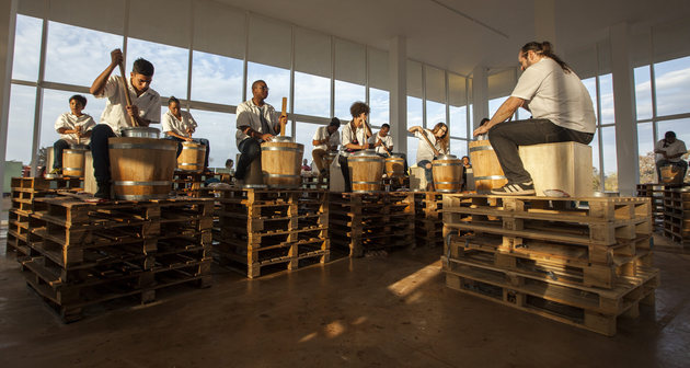 Presented in two sections, one in May 21st and the second in May 25th, both at 7pm, Ensaio sobre o fluido lights up the building for the first time, also realizing its vocation: seventy of its rooms will be occupied by local musicians, each one of them located in a different chamber to interpret a piece composed by Cuban Wilma Alba specially for the situation. The architecture determines both the sound behavior and the visitors' possible circuits, transforming the building itself in a musical instrument.