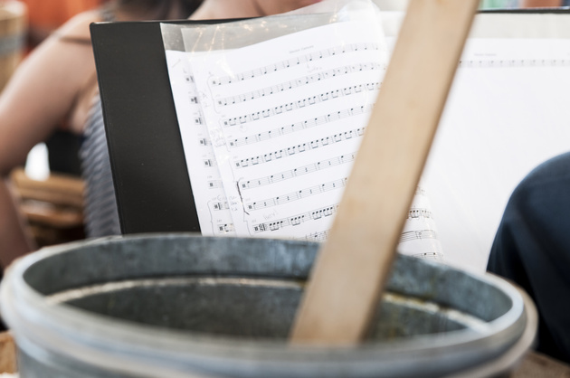 REviraVOLTA is the record of a performance held last August at Centro Cultural Banco do Brasil Brasília, with Ana Luiza Trajano and the body percussion group Barbatuques. Together, more than 40 performers prepared a milk free ice cream known in Mexico as “la nieve” though an artisanal process that emits a harmonic sound, originating a synesthetic work of musical, gastronomic and visual production.