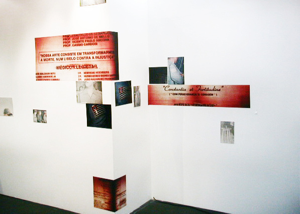 Caio Reisewitz participates in the exhibition with the site specific Autoridade [Authority], 1998 – 2014, composed of photographs where reality and subjectivity are in a mutual state of contamination. The artist questions situations of power abuse by public security servants, using images of policemen, regimentals, and symbols, alongside photos of ambiguous sentences, allegedly uplifting quotes from the military force, collected on the walls of the São Paulo Police Academy building.